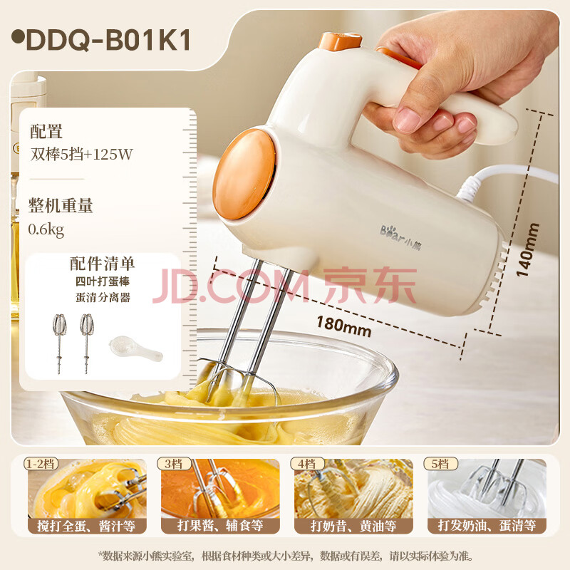 商品相册:小熊(Bear)打蛋器 家用电动打蛋机 迷你奶油打发器 烘焙手持自动搅蛋器搅拌器 DDQ-B01K1第1张/共9