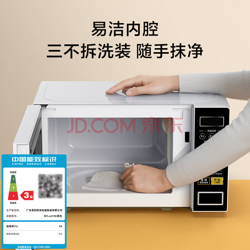 商品相册:美的(Midea)微波炉家用小型20升转盘加热 智能菜单 一键解冻 杀菌电子除味 薄膜按键(M1-L213C)第1张/共5