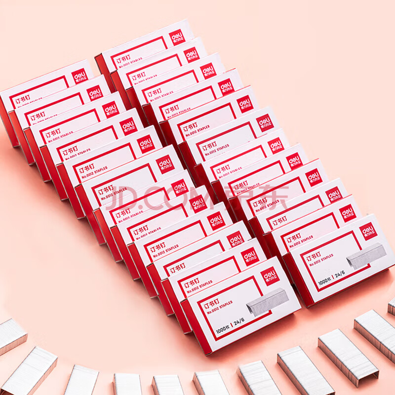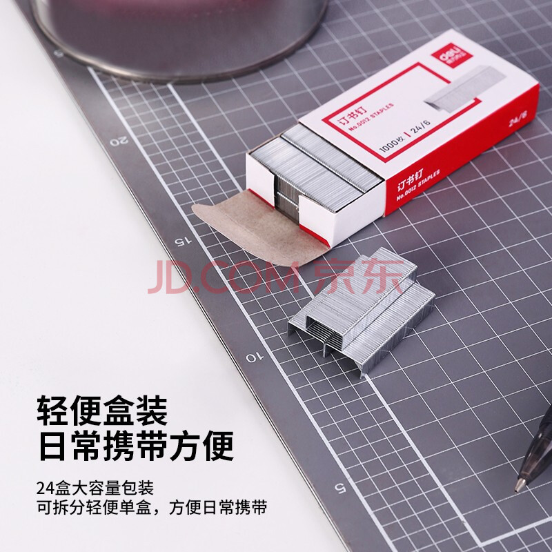 商品相册:得力(deli)24/6高强度订书钉 12#订书针 1000枚/盒 24盒装 可订25页 办公用品 P0012S第