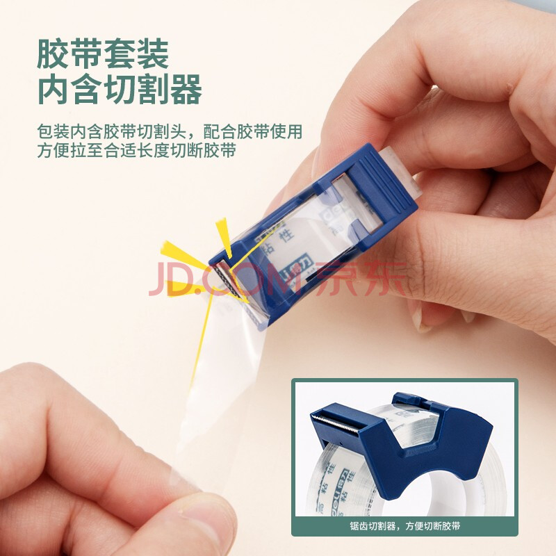 商品相册:得力(deli)透明胶带切割器套装 18mm*20m加厚高粘小胶带 开学必备学习用品 错题整理学生文具 2卷 30039第