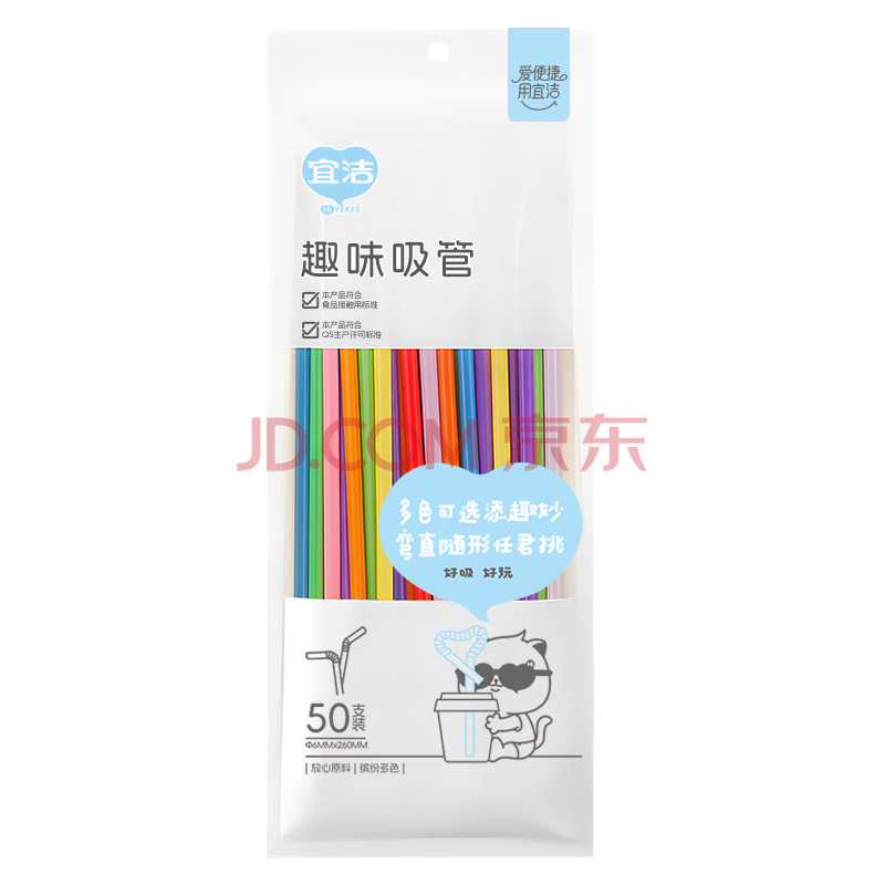 商品相册:宜洁(yekee) 一次性多变吸管餐具卫生艺术吸管50只装Y-9913第