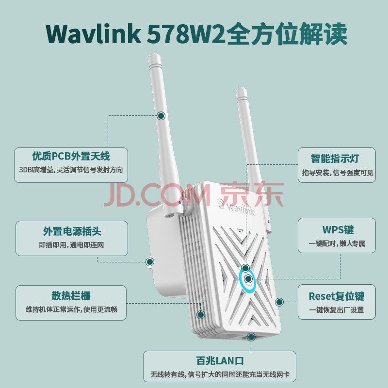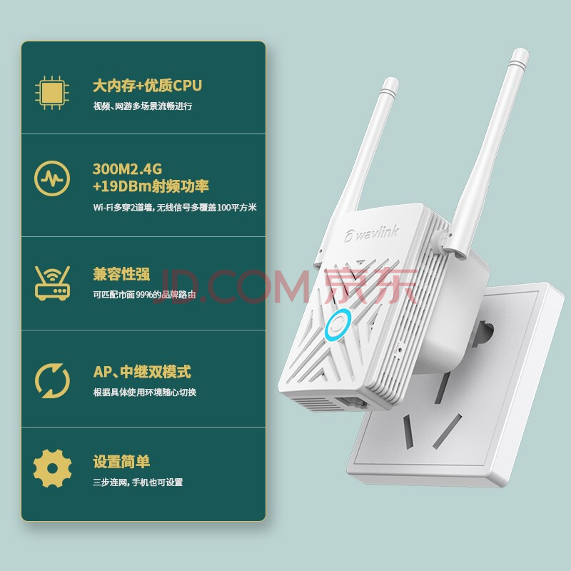 商品相册:睿因(Wavlink)WL-WN578W2 wifi信号放大器 无线WiFi 扩展器 中继器家用信号增强器无线AP 扩大器第1张/共8