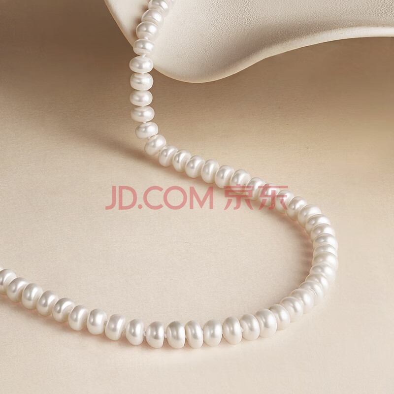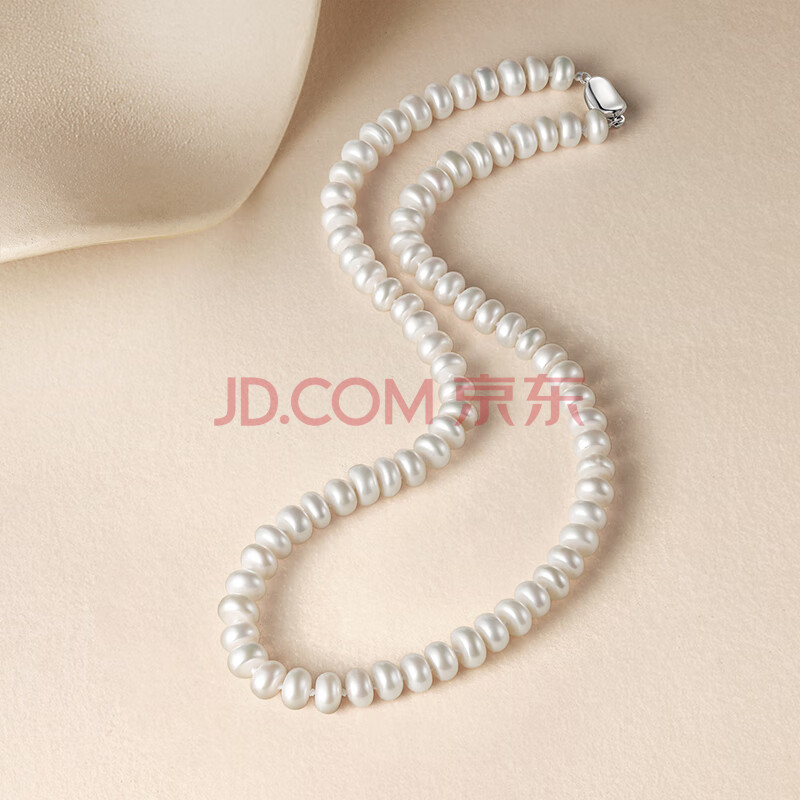 商品相册:周六福S925银扣珍珠项链妈妈生日礼物X058607扁圆形约7.5mm 45cm第1张/共6