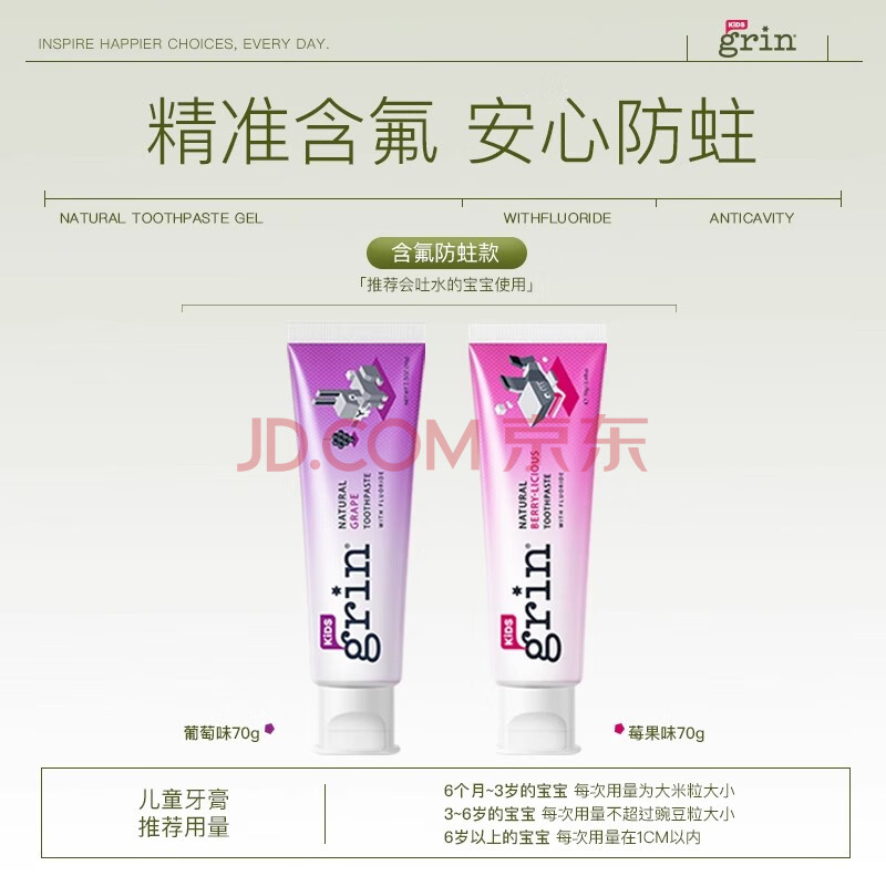 商品相册:grin儿童牙膏含氟防蛀3-6-12岁宝宝婴幼儿青少年牙膏70g莓果味第