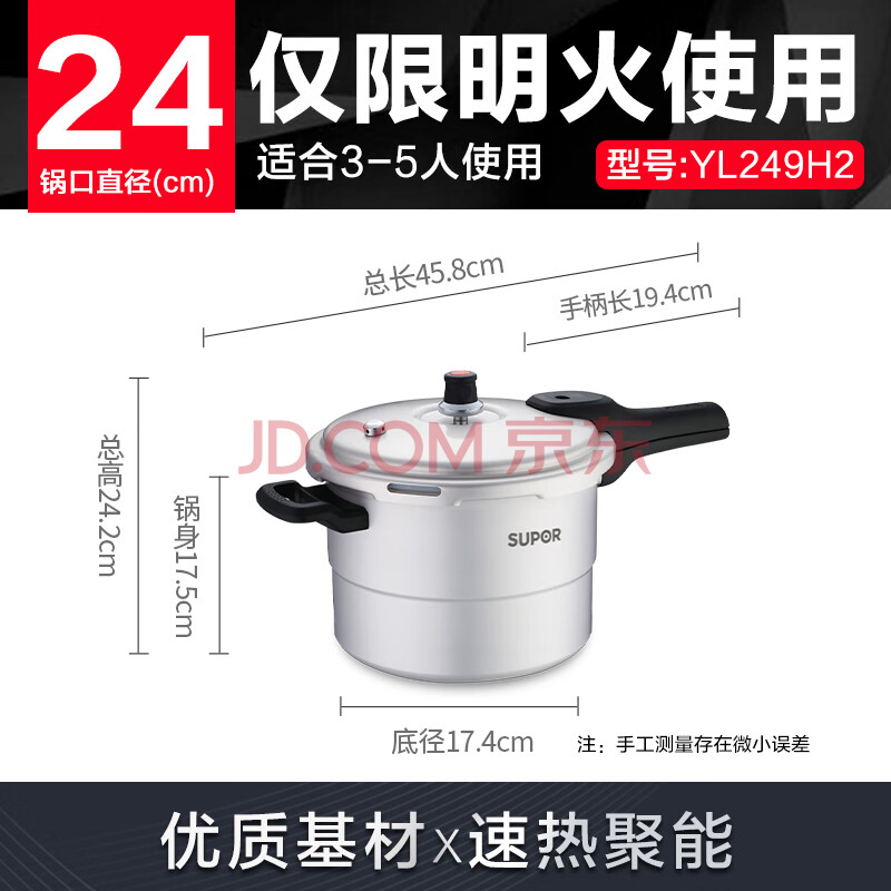 商品相册:苏泊尔SUPOR好帮手铝合金压力锅7.5L带蒸格24cm高压锅燃气专用YL249H2第1张/共6