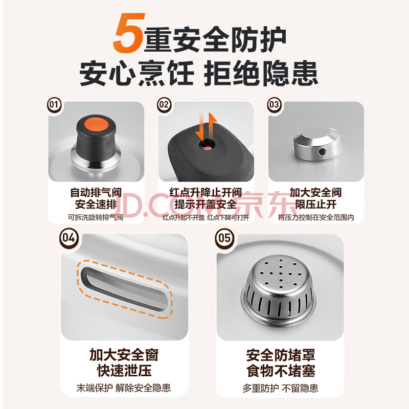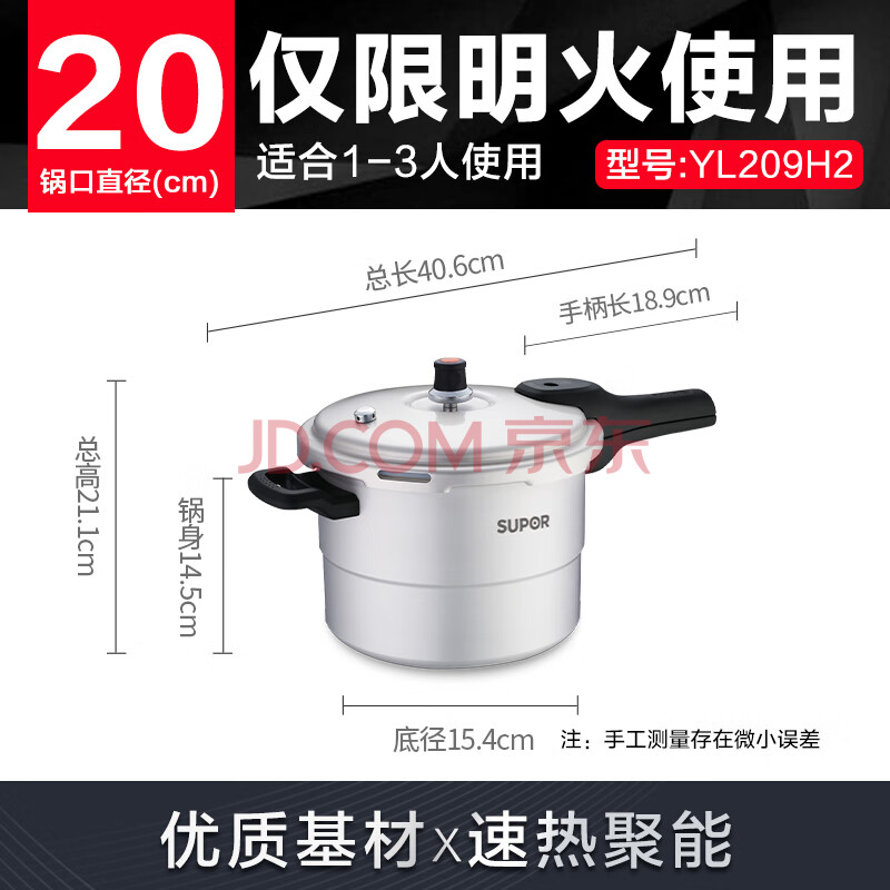 商品相册:苏泊尔SUPOR好帮手铝合金压力锅4.5L带蒸格20cm高压锅燃气专用YL209H2第1张/共5