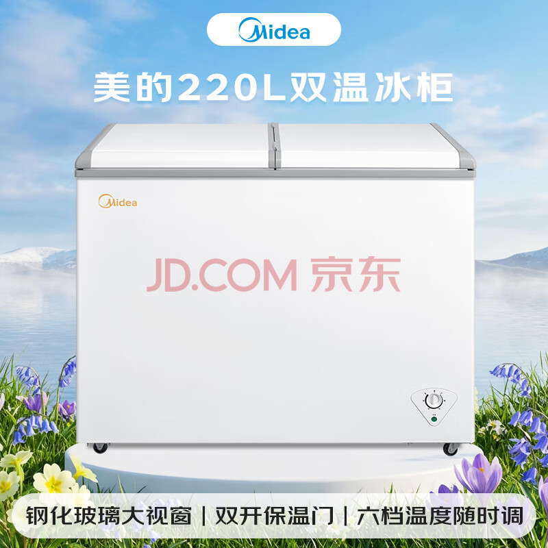 商品相册:美的(Midea)220L双温双箱家商两用冰柜展示柜雪糕柜大容量冷柜保鲜玻璃门冷藏冷冻两用卧式冰箱BCD-220VM(E)第