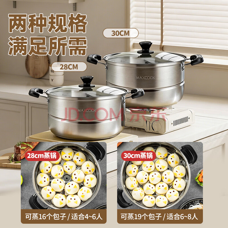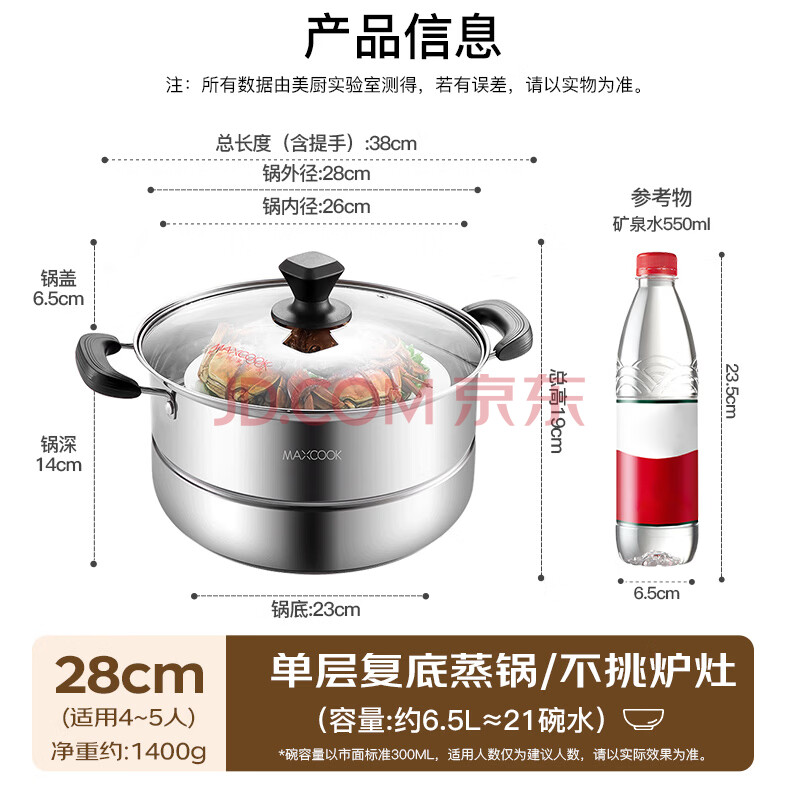 商品相册:美厨(maxcook)蒸锅 不锈钢28cm单层蒸锅 加厚复合底 燃气炉电磁炉通用第