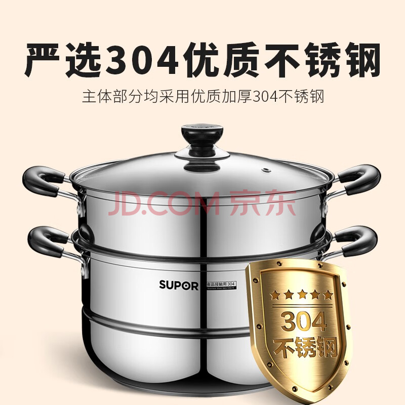 商品相册:苏泊尔SUPOR 好帮手304不锈钢双层复底26cm蒸锅汤锅蒸笼SZ26B5第