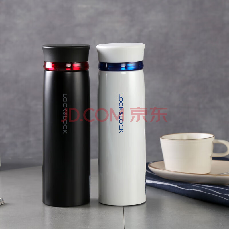 商品相册:乐扣乐扣(LOCK&LOCK)菲特旋盖轻量保温杯商务情侣水杯子白蓝+黑红450ml*2第1张/共6