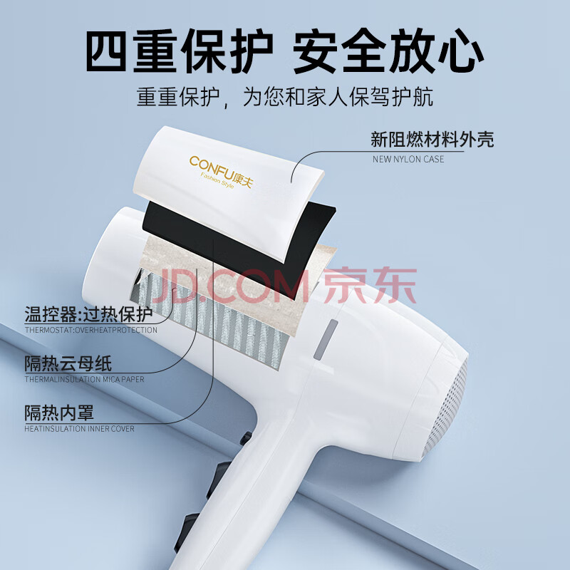 商品相册:康夫(CONFU)电吹风机家用2000W大功率大风力冷热风速干恒温护发吹风筒KF-3096第