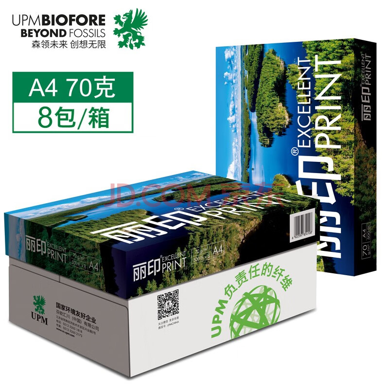 商品相册:UPM丽印湖光 A4打印纸 70克500张*8包一箱 批量畅打a4复印纸 办公学习整箱4000张【热销爆款】第