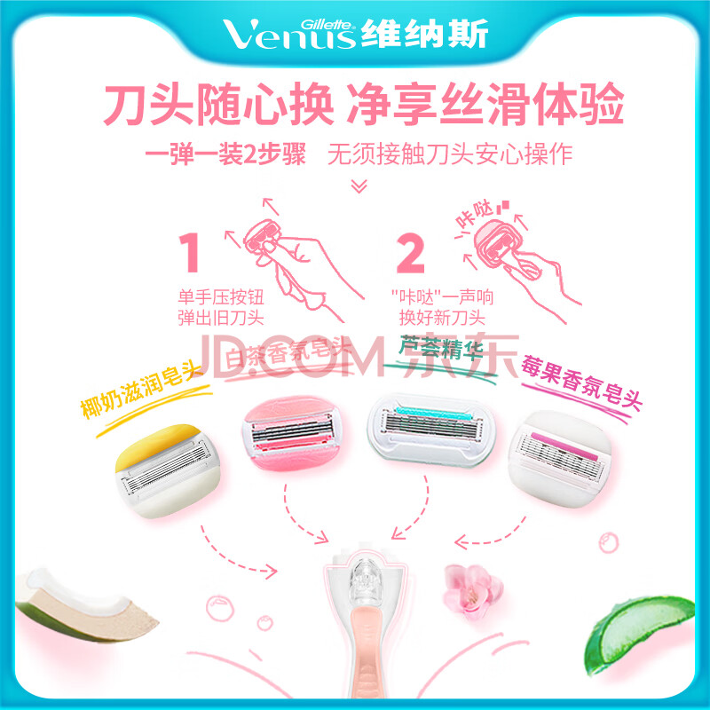 商品相册:吉列维纳斯刮毛刀 白茶刀中干性3刀头 腋下私处脱毛刀刮毛女士专用第