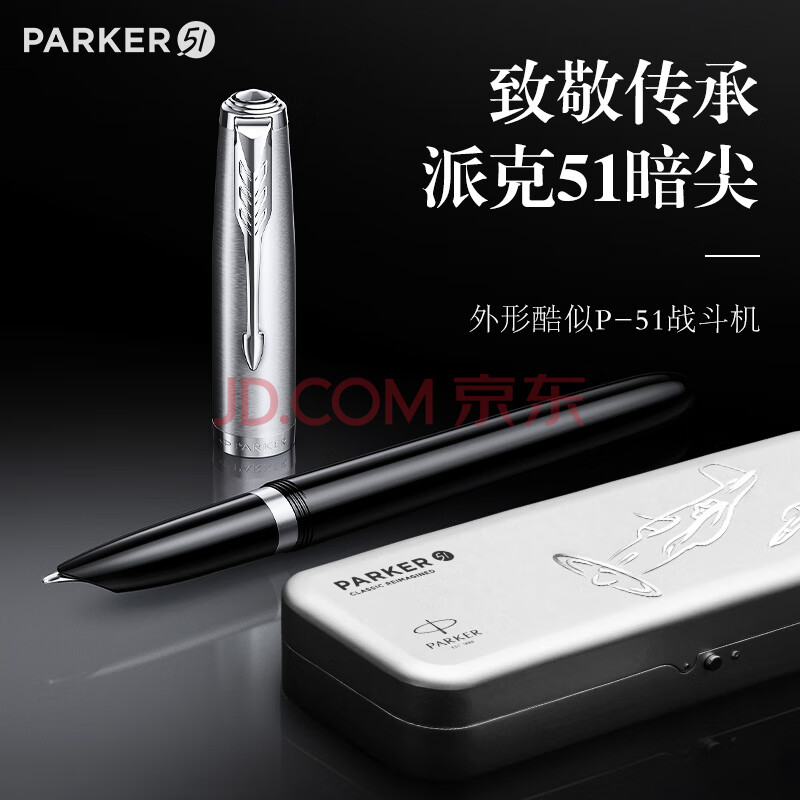 商品相册:派克(PARKER)钢笔 签字笔 马年商务办公书写练字高档礼物签字笔复古礼盒 51麦道鹰黑白夹墨水笔第