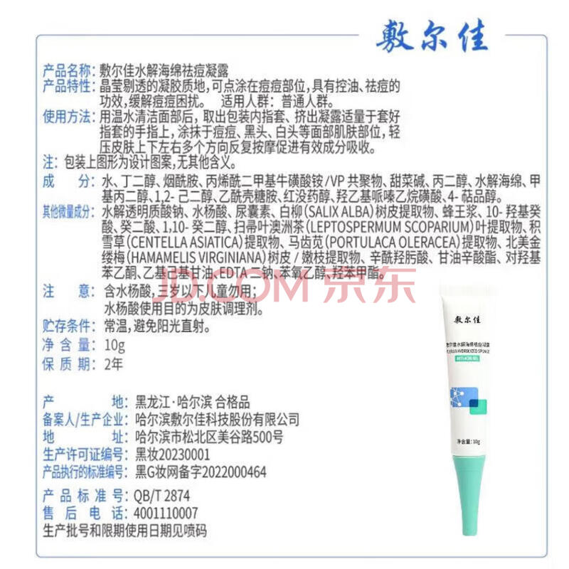 商品相册:敷尔佳水解海绵祛痘凝露10g 改善痘痘肌点涂控油 凝胶第