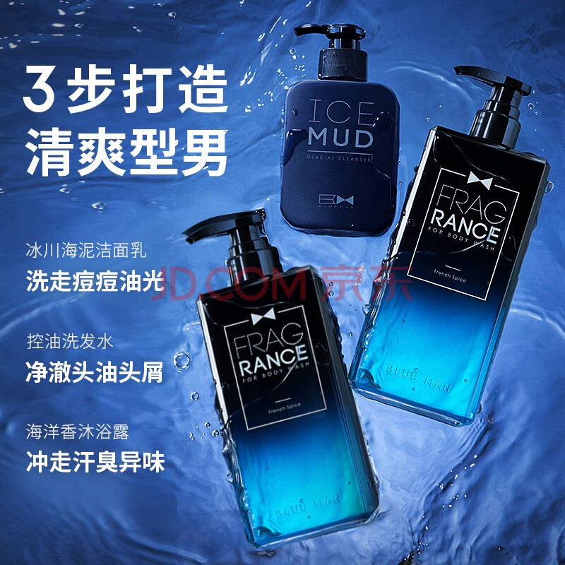 商品相册:尊蓝男士沐浴露持久留香洗面奶洗发水洗护套装三效合一沐浴露第