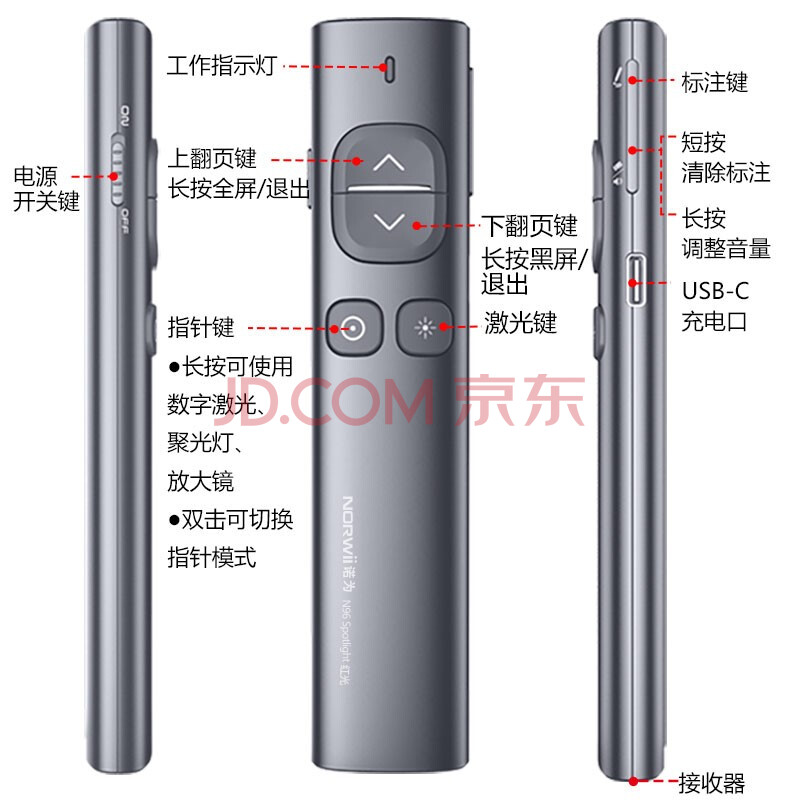 商品相册:诺为N96s 双激光翻页笔教师用液晶屏led无线演示器 数字激光 飞鼠PPT充电投影带32G U盘 红光第