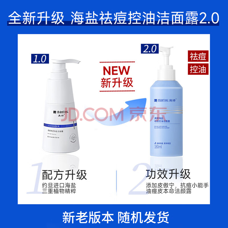 商品相册:满婷(MANTING)海盐祛痘控油洁面露180ml(保湿男女士洗面奶清爽洁净水润保湿)第