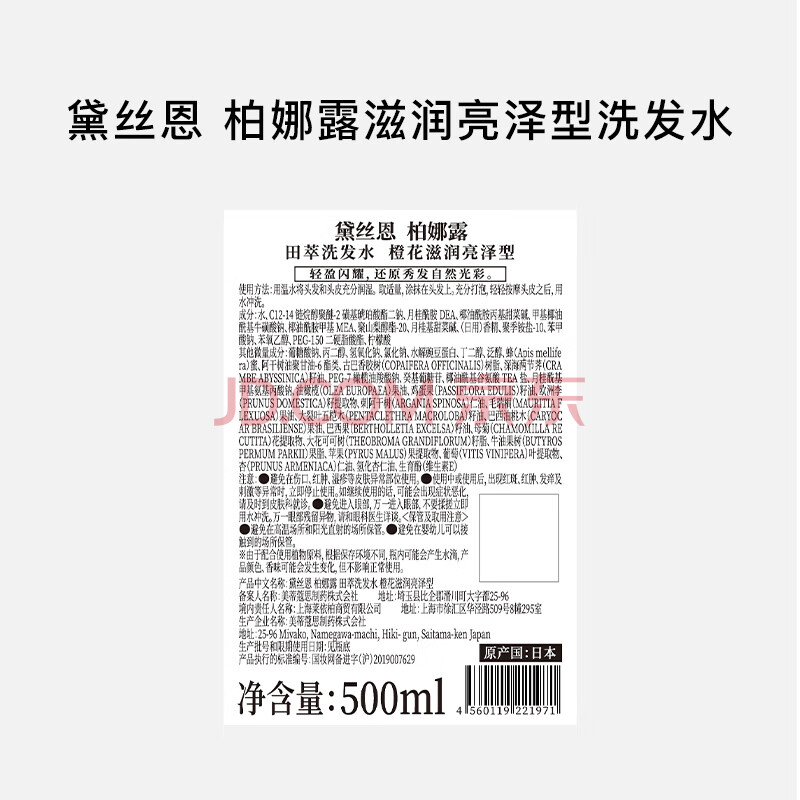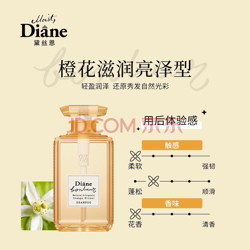 商品相册:黛丝恩 (Moist Diane)田萃系列柏娜露橙花滋润亮泽型洗发水500ml第
