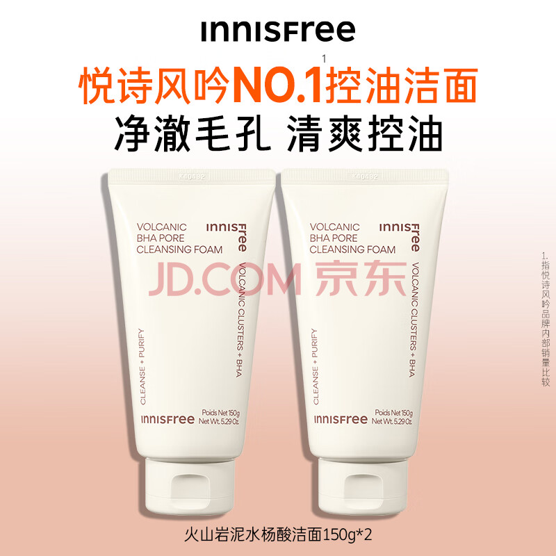 商品相册:悦诗风吟(innisfree)火山泥洗面奶150g*2水杨酸泡沫男士女士控油泡沫送女友礼物第