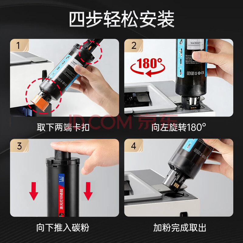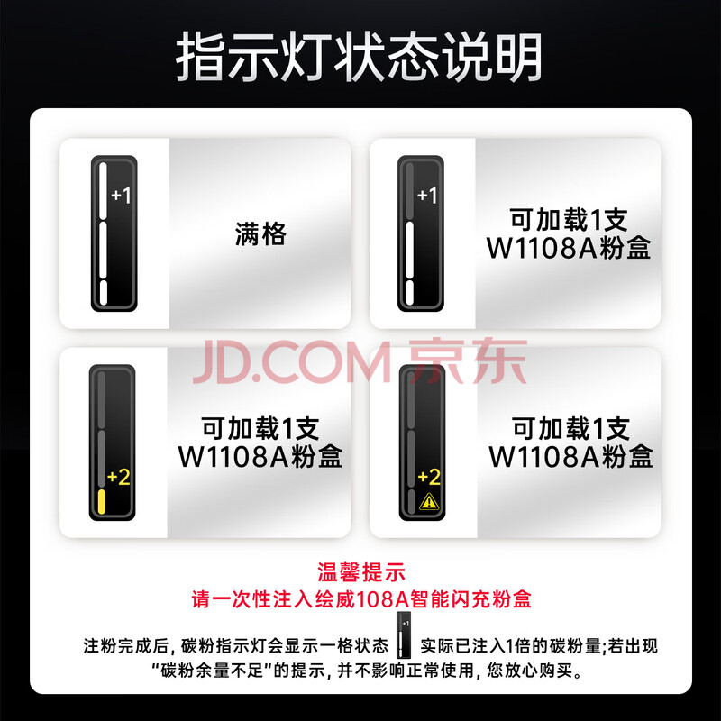 商品相册:绘威W1108A粉盒108AD 适用惠普ns1005w墨粉 1020w墨粉 ns1005c硒鼓 1005n 1020c 1020n打印机闪充碳粉 4支装第