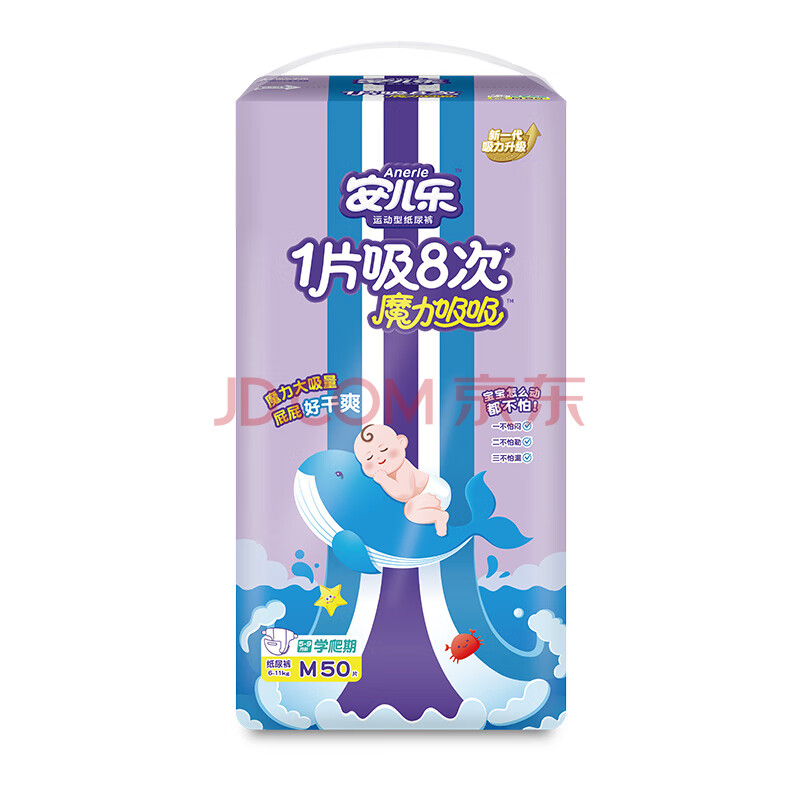 商品相册:安儿乐(Anerle)魔力吸吸纸尿裤M50片(6-11kg)透气大吸量尿不湿【夜用专研】第