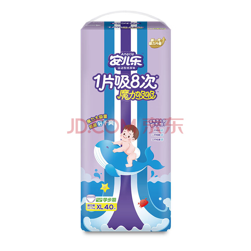 商品相册:安儿乐(Anerle)魔力吸吸拉拉裤XL40片(12-17kg)透气大吸量尿不湿【夜用专研】第