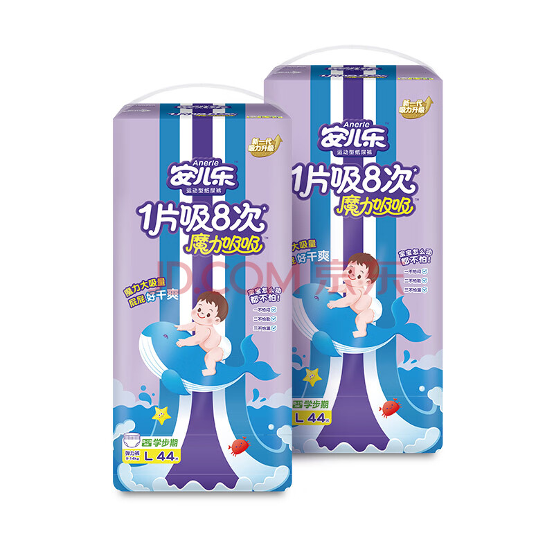 商品相册:安儿乐(Anerle)魔力吸吸拉拉裤L44片*2(9-14kg)透气大吸量尿不湿【夜用专研】第