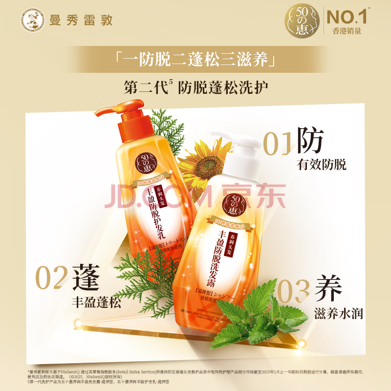 商品相册:五十惠50惠曼秀雷敦丰盈洗发水滋养型250ml改善头皮活力强韧发丝洗发露第