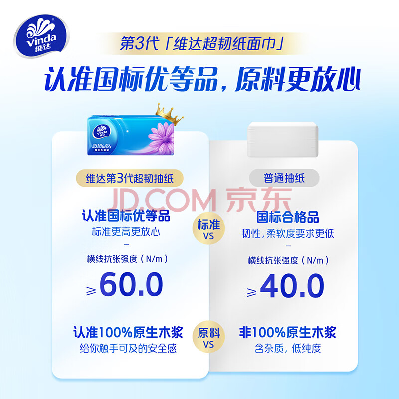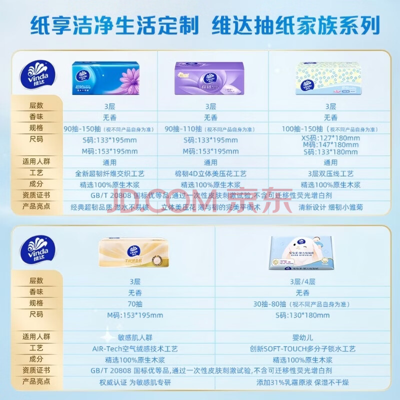 商品相册:维达(Vinda)抽纸 超韧3层130抽*6包S码 湿水不易破 卫生纸 纸巾 餐巾纸 纸抽第