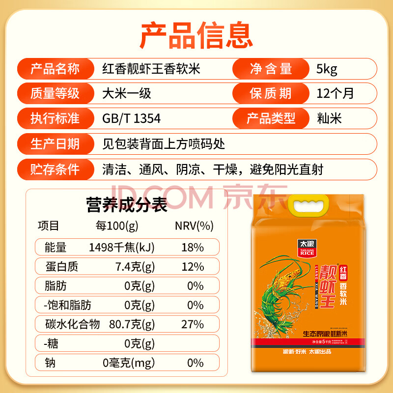 商品相册:太粮红香靓虾王10斤 油粘米籼米 大米5kg 长粒猫牙米 当季新米第