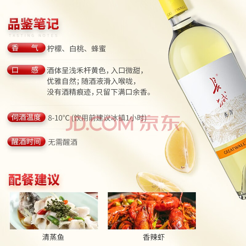 商品相册:长城东方系列 雷司令半甜白葡萄酒 爽口易饮 佐餐优选750ml单瓶装第