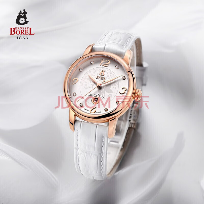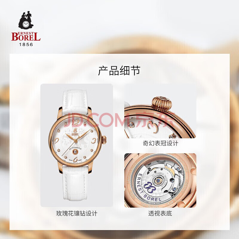 商品相册:依波路(ERNEST BOREL)瑞士女士手表 女神礼物 蝴蝶花系列 间金镶钻皮带机械女表送女友第