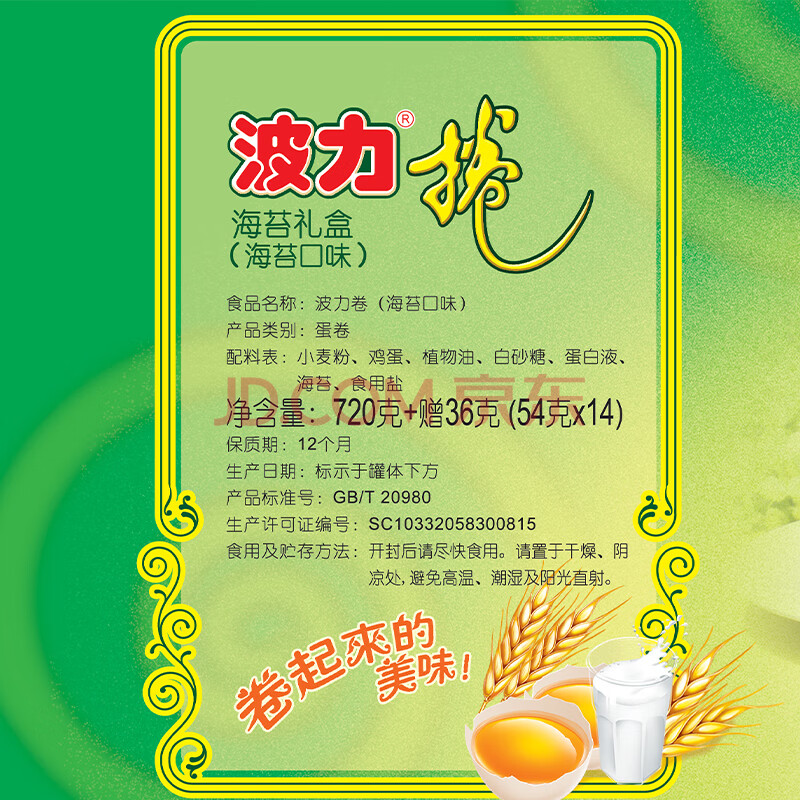 商品相册:波力海苔味鸡蛋卷756g(54g*14)代餐饼干休闲零食节日精装礼盒第1张/共5