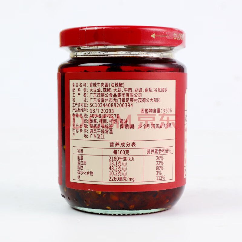 商品相册:茂德公 辣椒酱牛肉酱220g 佐餐拌饭拌面香辣酱 火锅蘸料调味酱下饭菜第