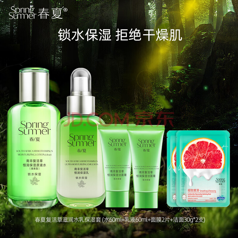 商品相册:春夏复活草水乳保湿套外油内干(水60ml+乳液60ml+面膜2片+洁面30g*2)第