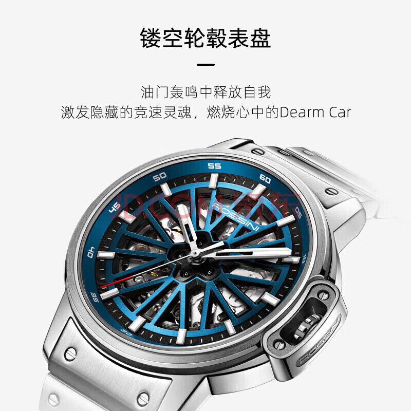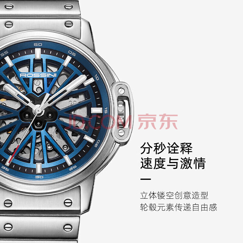商品相册:罗西尼(ROSSINI)手表男机械表勋章蓝盘钢带生日礼物送男友国表镂空夜光 520999第