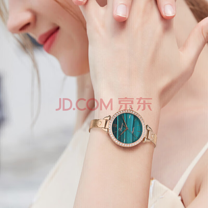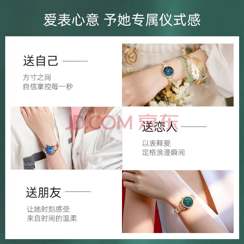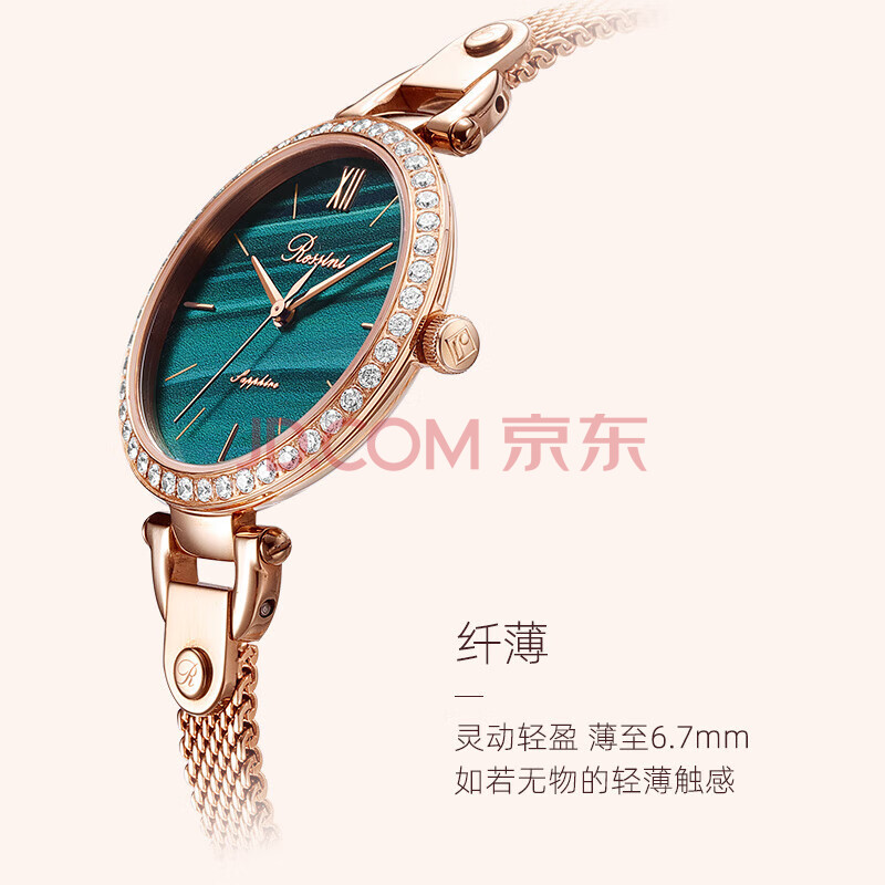 商品相册:罗西尼(ROSSINI)手表女石英表绿盘钢带生日礼物送女友国表气质时尚小绿表 519898第