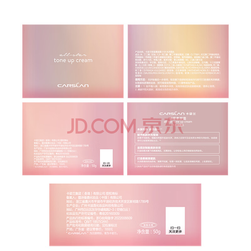 商品相册:卡姿兰(Carslan)明星素颜霜双支懒人面霜伪素颜补水保湿提亮50g*2 生日礼物送女生第