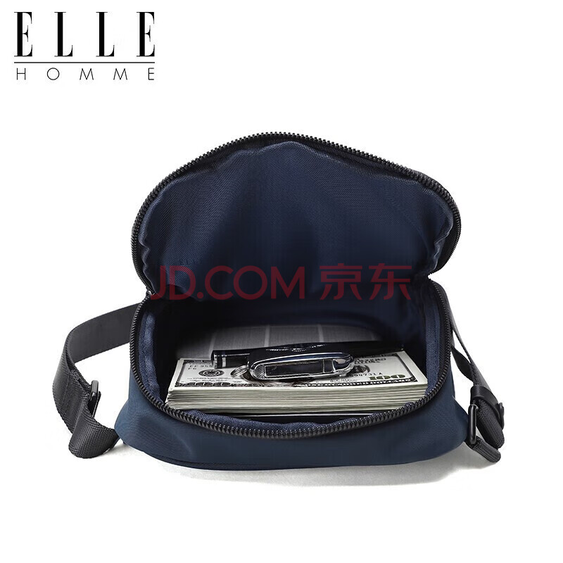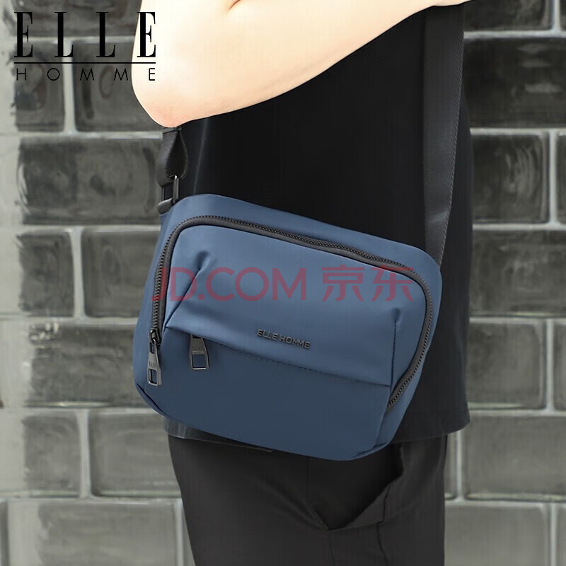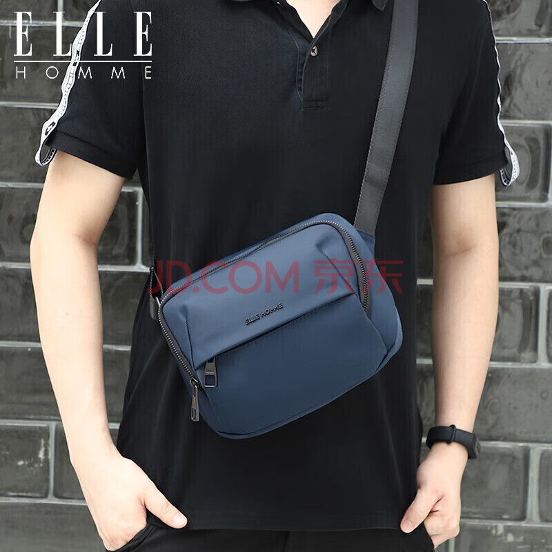 商品相册:ELLE HOMME男士单肩包 潮流轻便帆布斜挎包 防泼水休闲手机包男包08333蓝色生日礼物送男友第