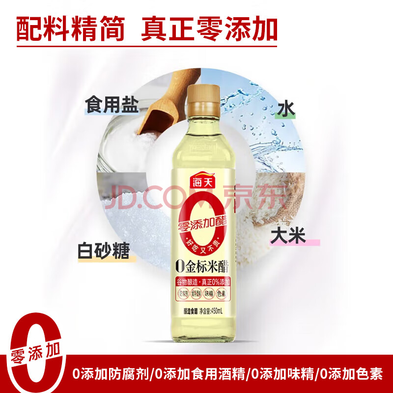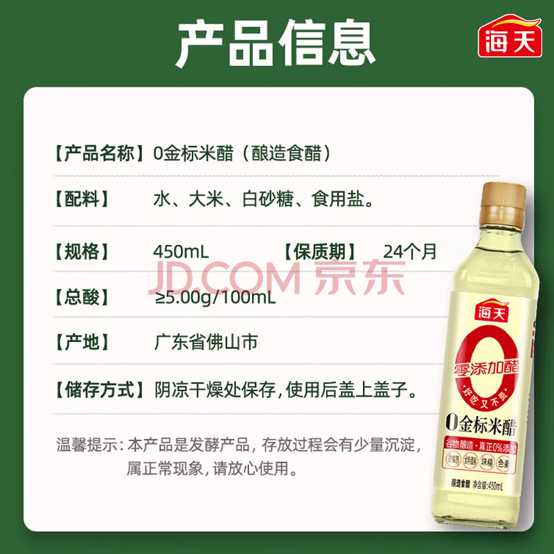 商品相册:海天 0金标米醋5度 450ml【0添加】点蘸凉拌 酿造食醋第