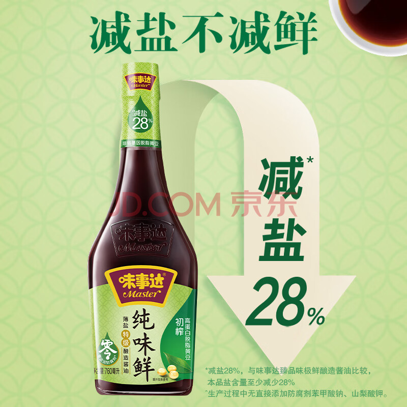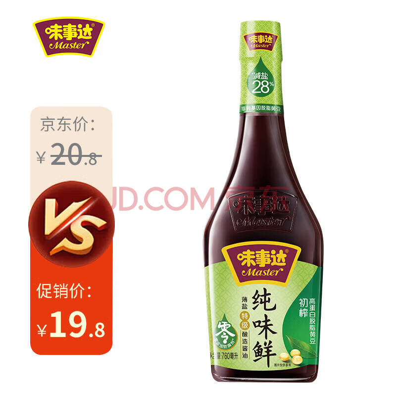 商品相册:味事达纯味鲜系列 生抽酱油760ml【减盐 特级酱油】点蘸凉拌厨房调味第