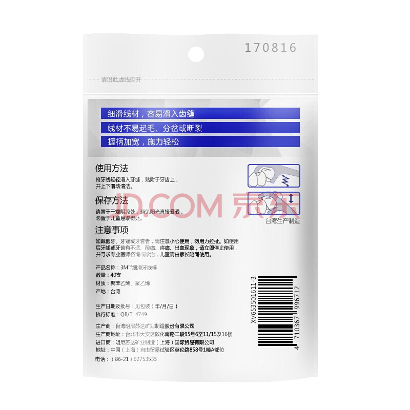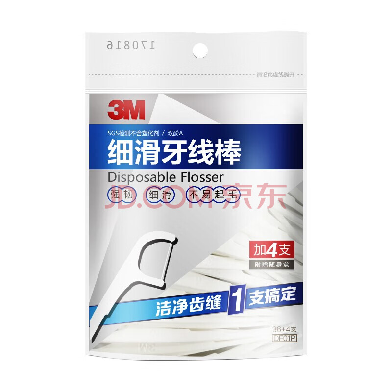 商品相册:3M牙线棒 细滑牙线清洁牙齿牙缝 成人剔牙签线(36+4支装)配旅行盒第
