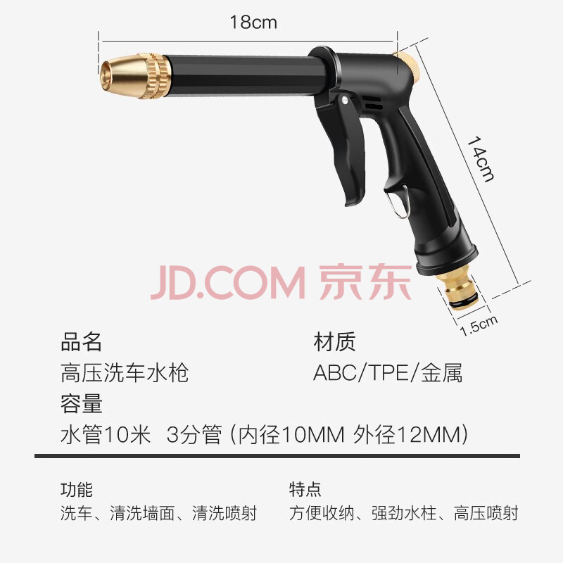 商品相册:派乐特 洗车水管水枪高压家用加压可调节浇花刷车神器清洁工具10米水管第