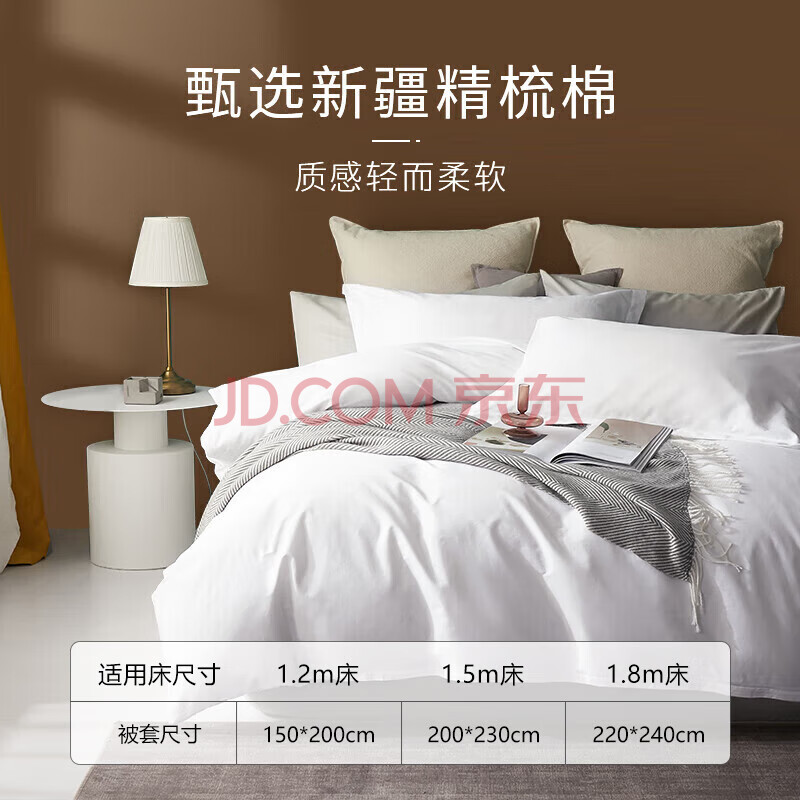 商品相册:源生活 酒店白色被套单件 100%纯棉宾馆被罩宿舍被单 1.5米床200*230cm第1张/共3