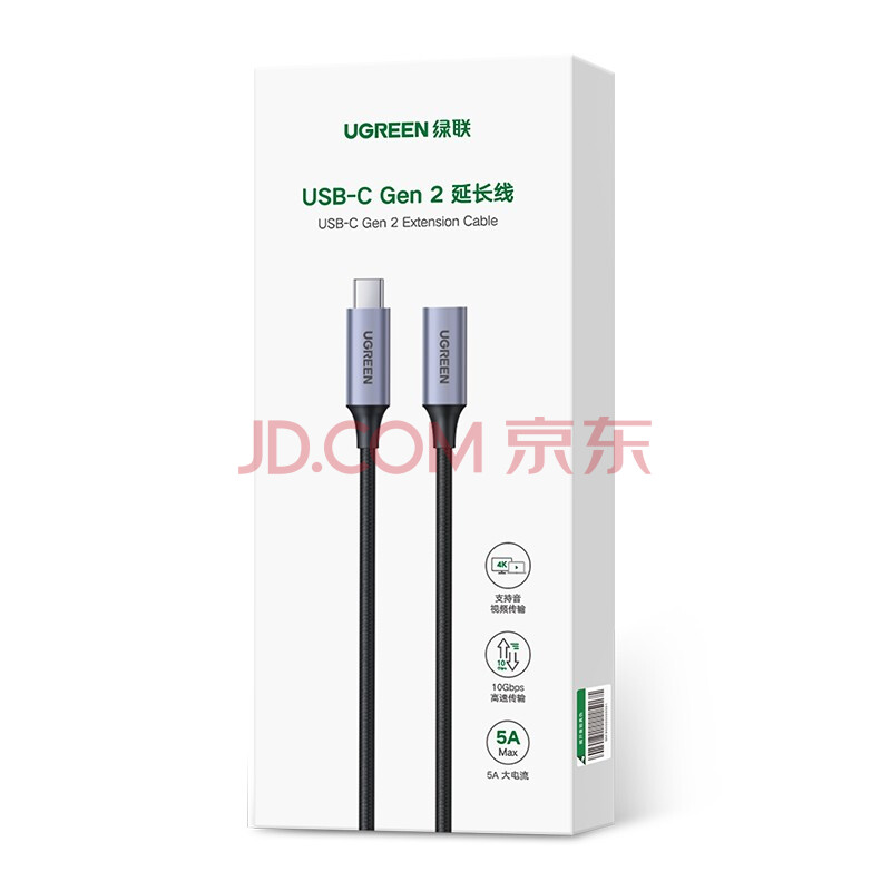 商品相册:绿联Type-C延长线公对母USB3.2Gen2全功能数据线PD100W快充兼容雷电4/3显示器4K投屏传输适用苹果华为第
