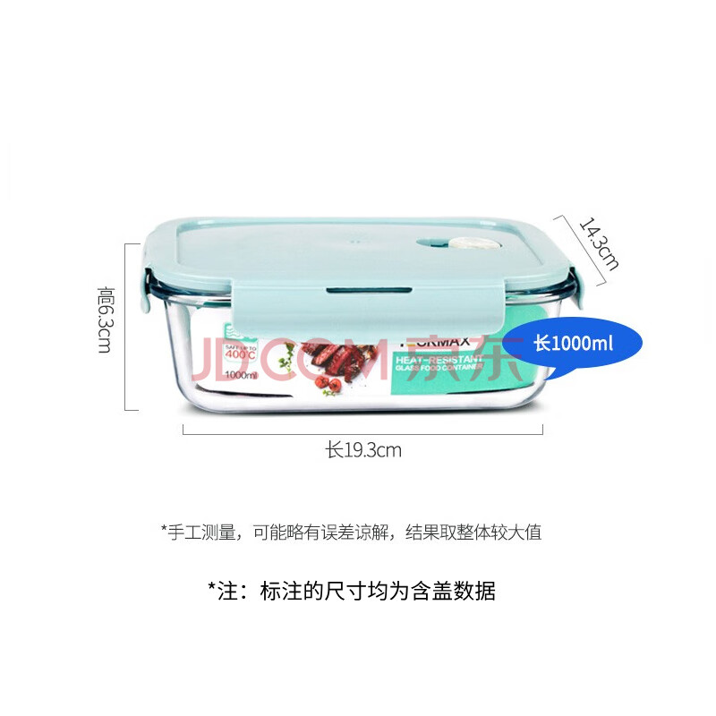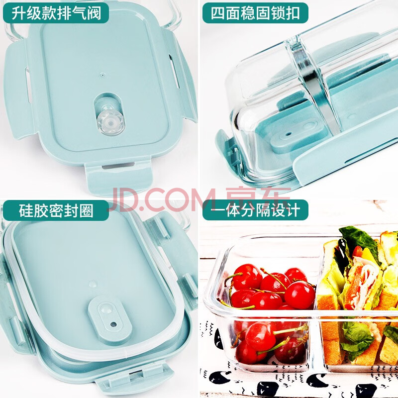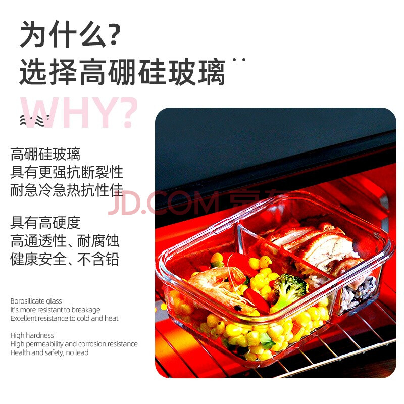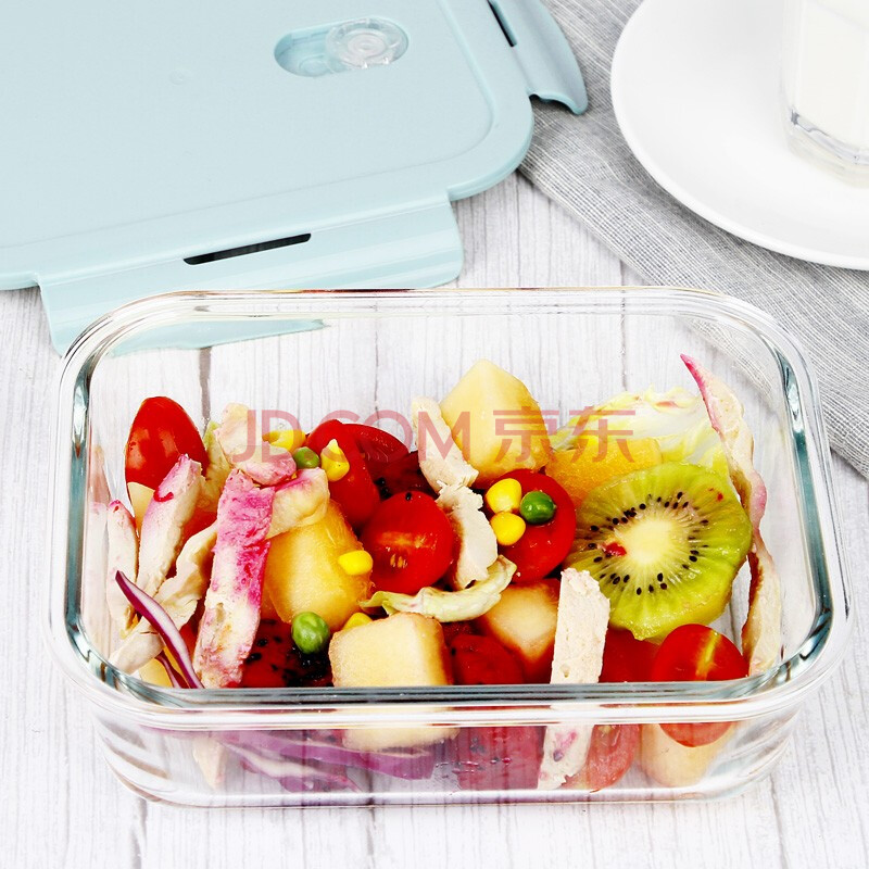 商品相册:德玛斯耐热玻璃保鲜盒微波炉饭盒上班族便当盒餐碗 长1000*2+包+餐具第