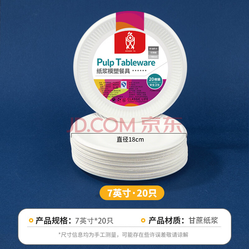商品相册:SHUANG YU一次性盘子7英寸*20只可降解纸盘纸碟防水防油圆盘手工盘圆盘用品第1张/共7