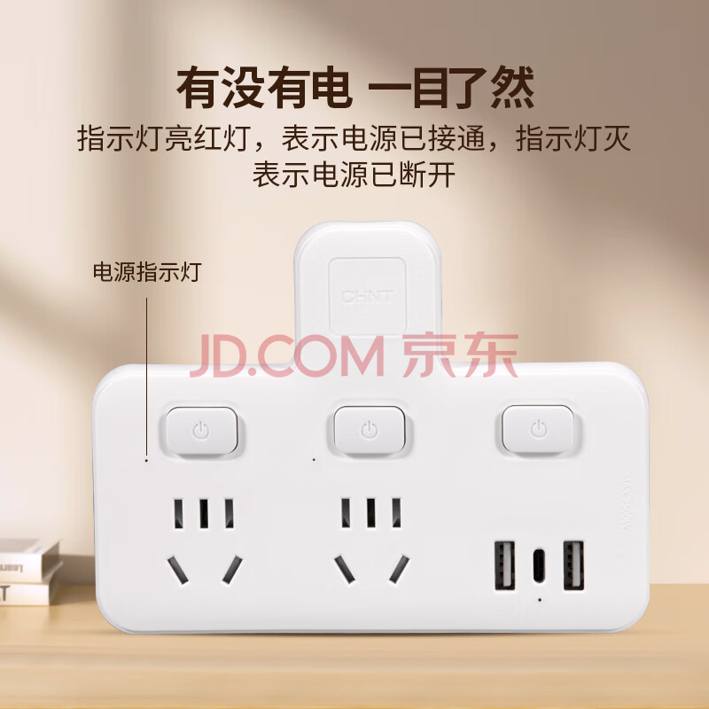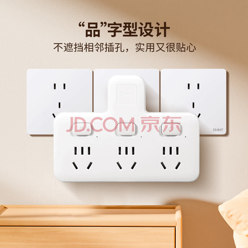 商品相册:正泰(CHNT)转换插头/品字形一转三插座/无线转换插座/电源转换器 3位总控插座(带开关)第