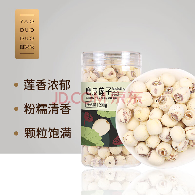 商品相册:姚朵朵 莲子200g 湘潭去芯磨皮白莲子干货去芯特产红枣百合银耳桂圆莲子第1张/共7